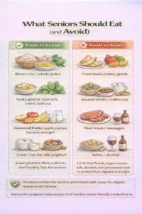 - Grocery Coordination & Daily Meal Support: Assistance with sourcing ingredients and meal preparation ensures seniors have access to fresh, appropriate, and balanced food regularly.